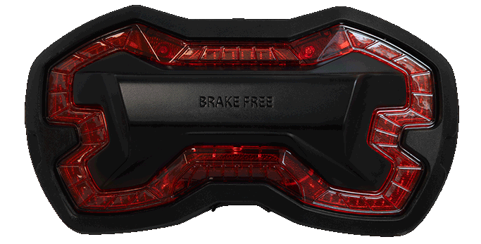 Riding with Brake Free instantly makes you more visible as the 100 ultra-bright leds will automatically signal any deceleration event to traffic pulling-up from behind preventing rear-end collisions.